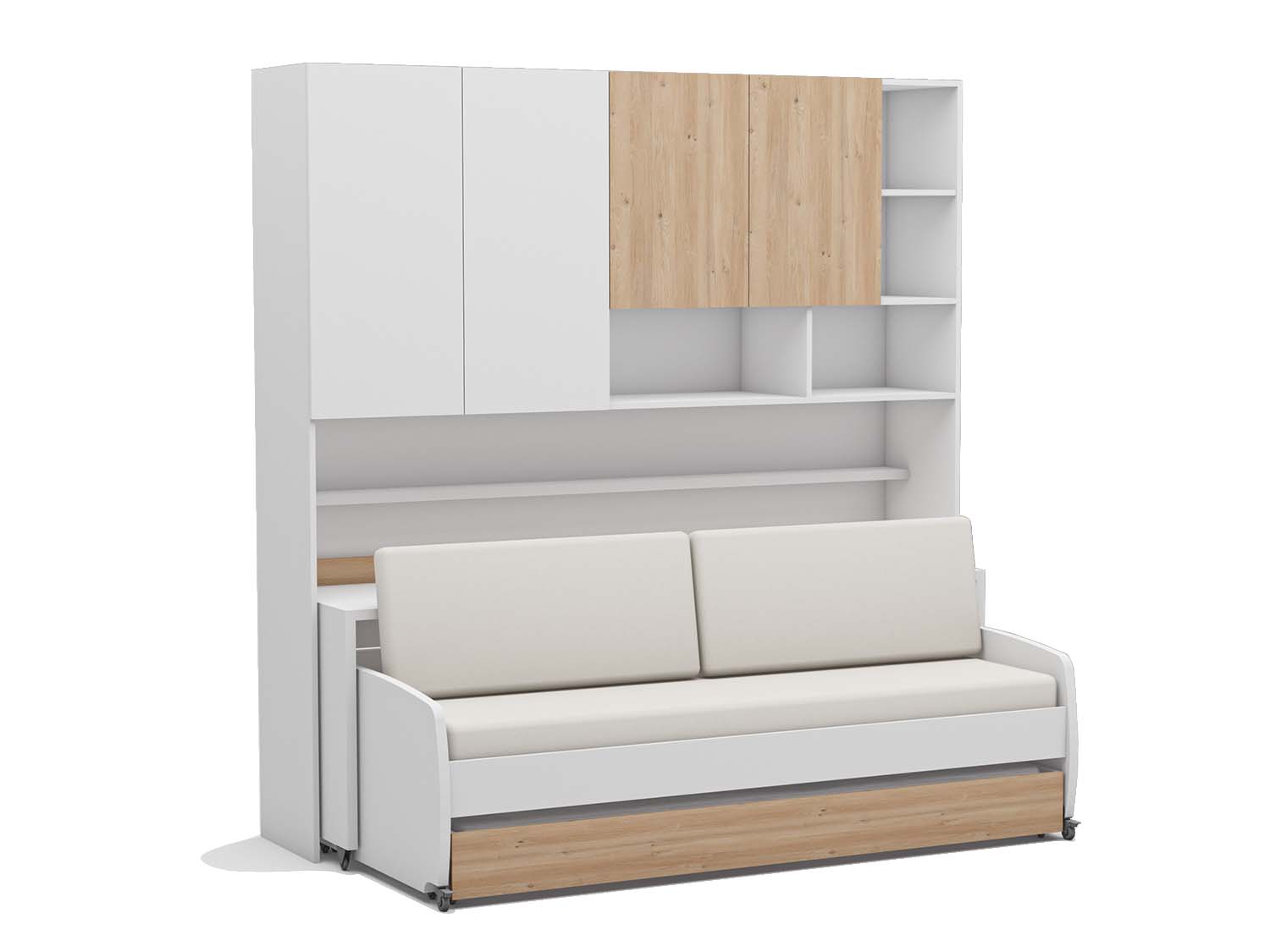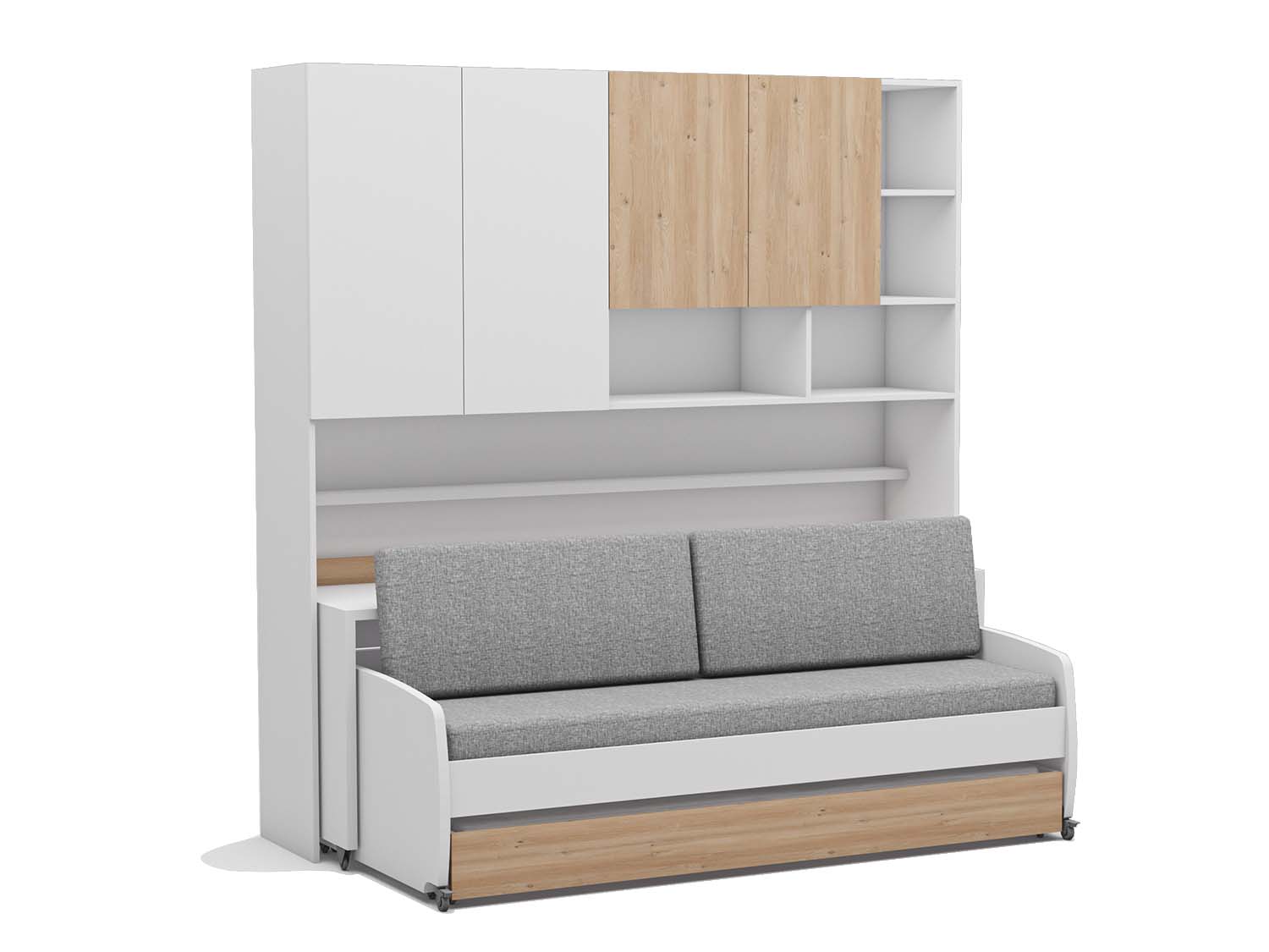 Er is ook een compacte versie van de Icon die bestaat uit een kastgedeelte, het bed en het bureau plaats je dan onder het kastgedeelte. Eventueel ook te combineren met het uitschuifbed – bedlade.